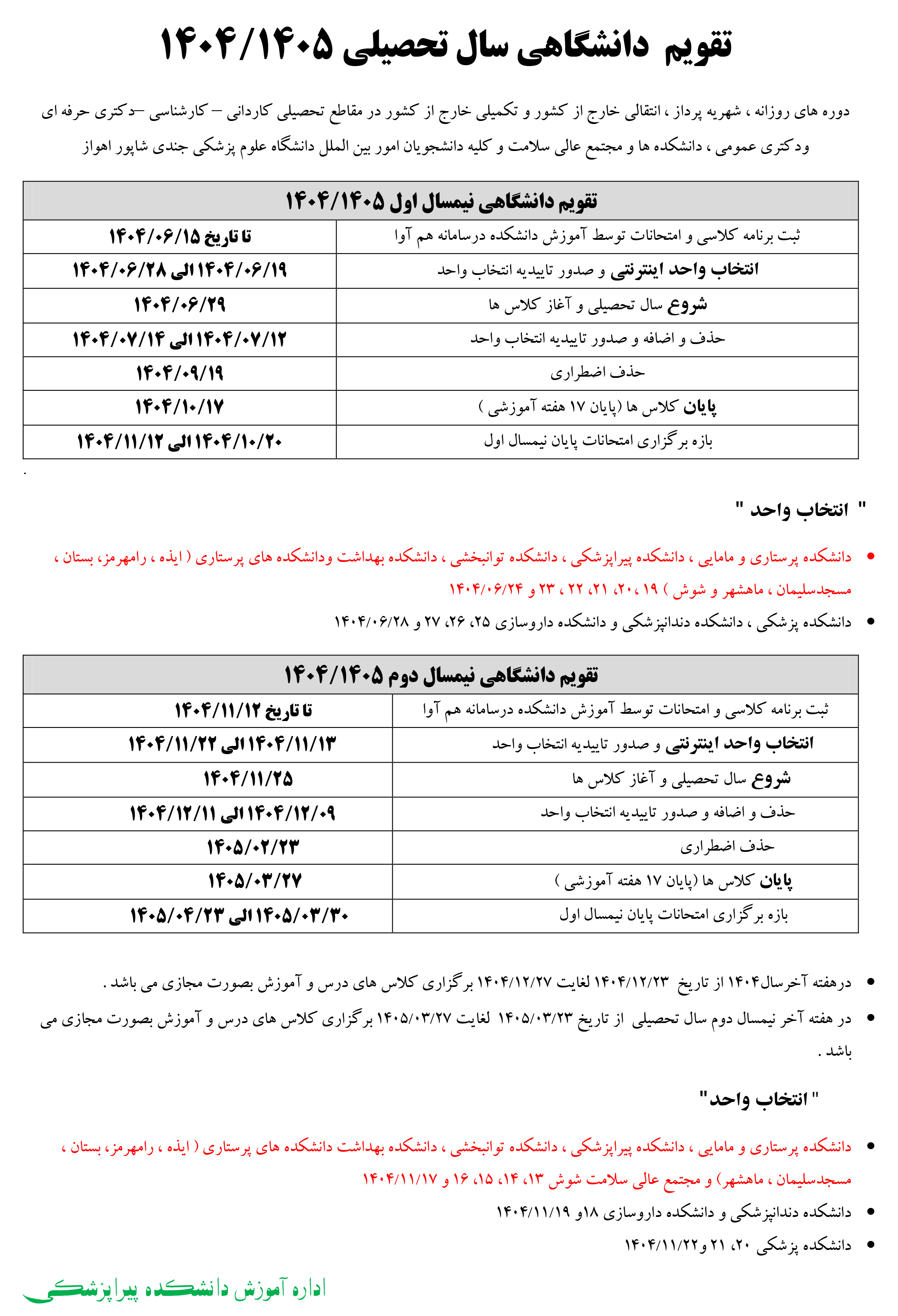 • تقویم آموزشی سال تحصیلی 1404/1405